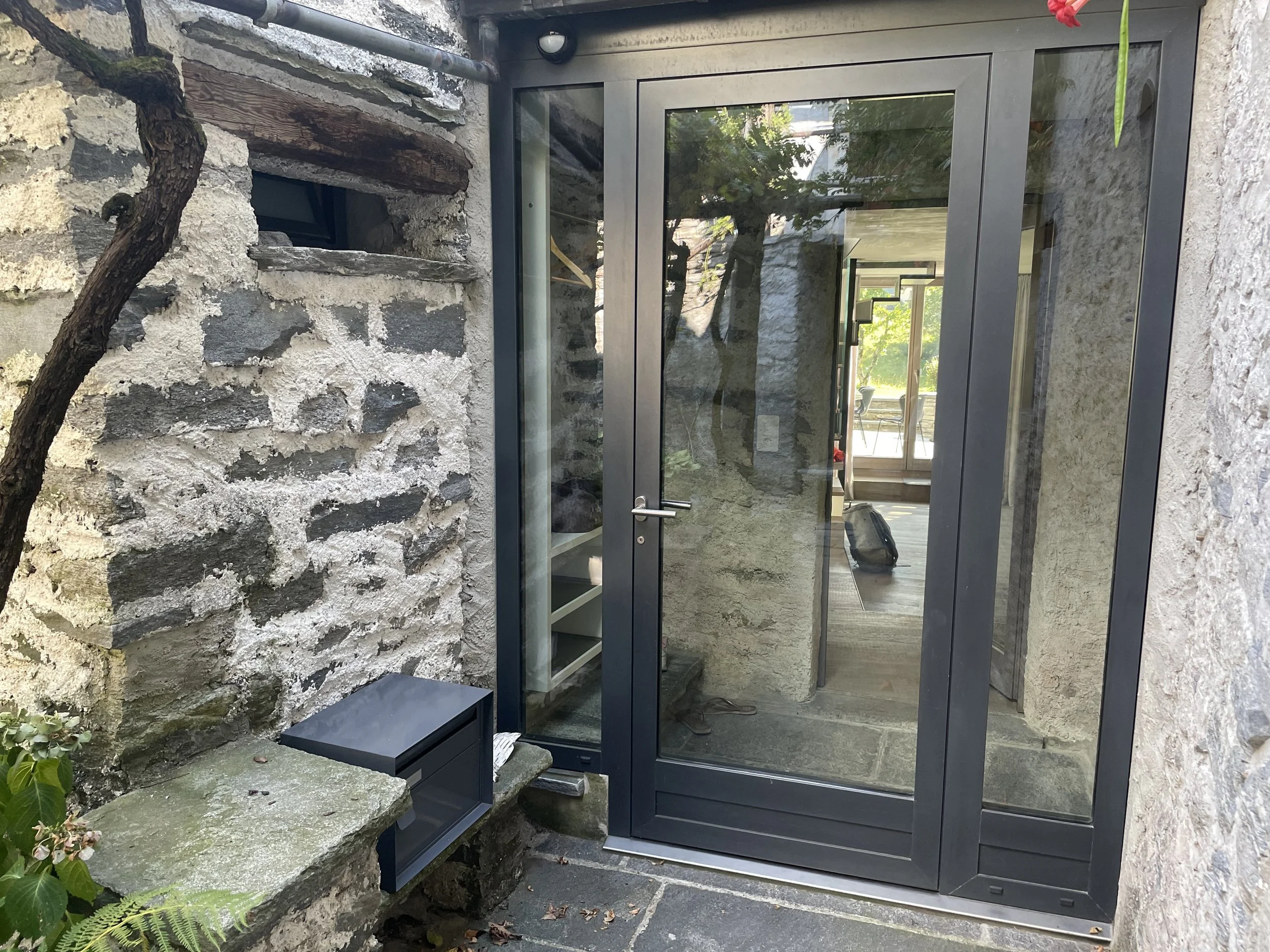 Der Eingang zum Studio C befindet sich im Durchgang auf der rechten Seite (offizielle neue Adresse nicht in Google ist “l Cará di Tondècch 4, 6670 Avegno”, entspricht Via ai Grotti 10, 6670 Avegno)